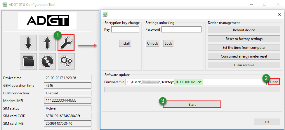 In order to update the data logger firmware version using the DTU Configuration Tool software: